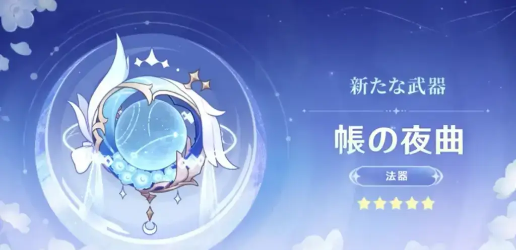 既に実装済みの聖遺物「月を紡ぐ夜の歌」も月反応編成には強い効果をもっています。