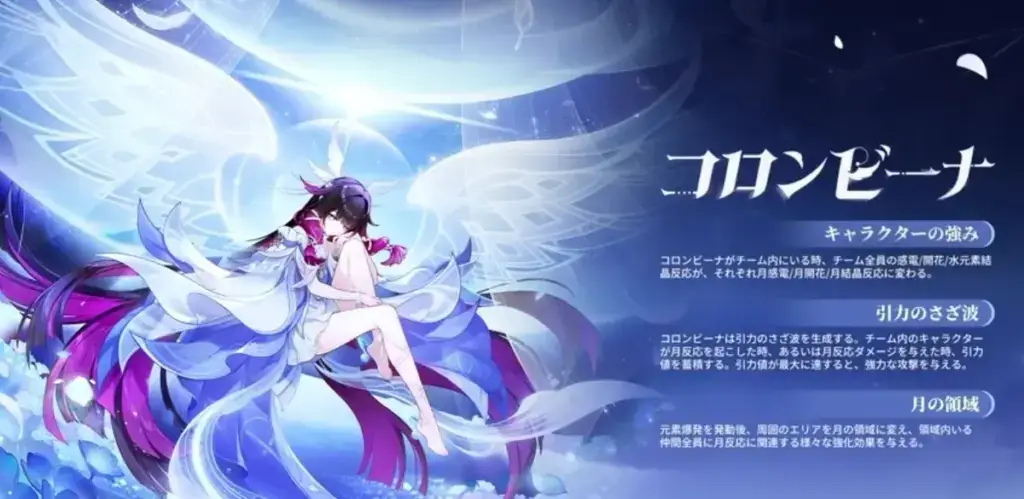 コロンビーナは、水元素の法器キャラクター。本名は「コロンビーナ・ハイポセレニア」で、新しい月の神です。