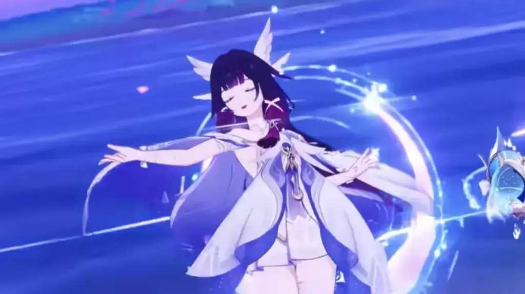 固有天賦「月兆の祝福・汝に月光を授けん」により、コロンビーナを編成に入れるだけで下記の水元素に関わる反応を月反応に変化させます。